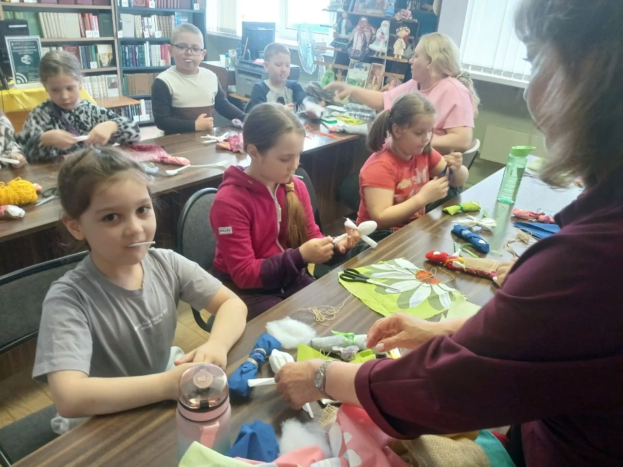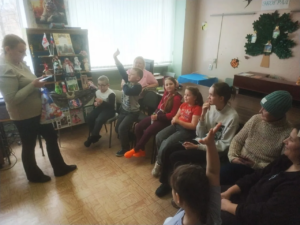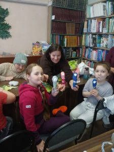 Наша библиотека филиал №3 приняла в акции активное участие и подготовила интересную насыщенную программу встречи. Началась она с квиза-викторины «Национальные костюмы и кухни народов России» и продолжилась МК по изготовлению традиционной Архангельской куклы на ложке. Нашим гостям было предложено смастерить по два оберега — «Куклу кормилицу» и «Куклу пеленашку», что они с удовольствием и не без труда осуществили.