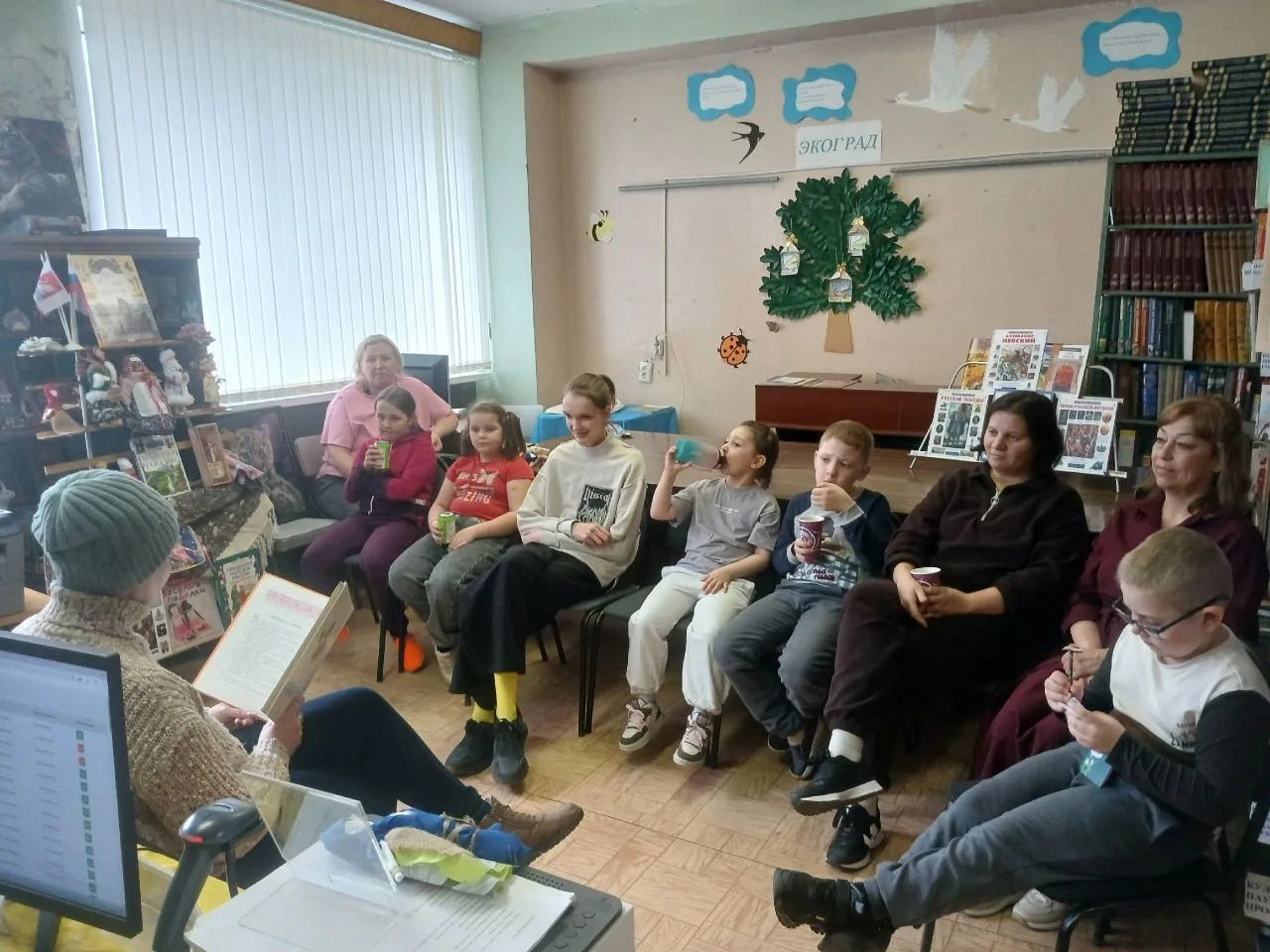 А потом, в исполнении взрослых читателей, мы слушали громкое выразительное чтение русских народных сказкок. И тоже много смеялись над незадачливыми героями и от того, что просто было очень хорошо, душевно и по-домашнему тепло и комфортно в нашем библиотечном пространстве.