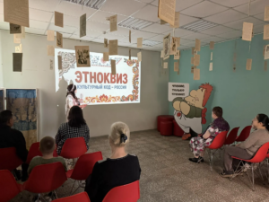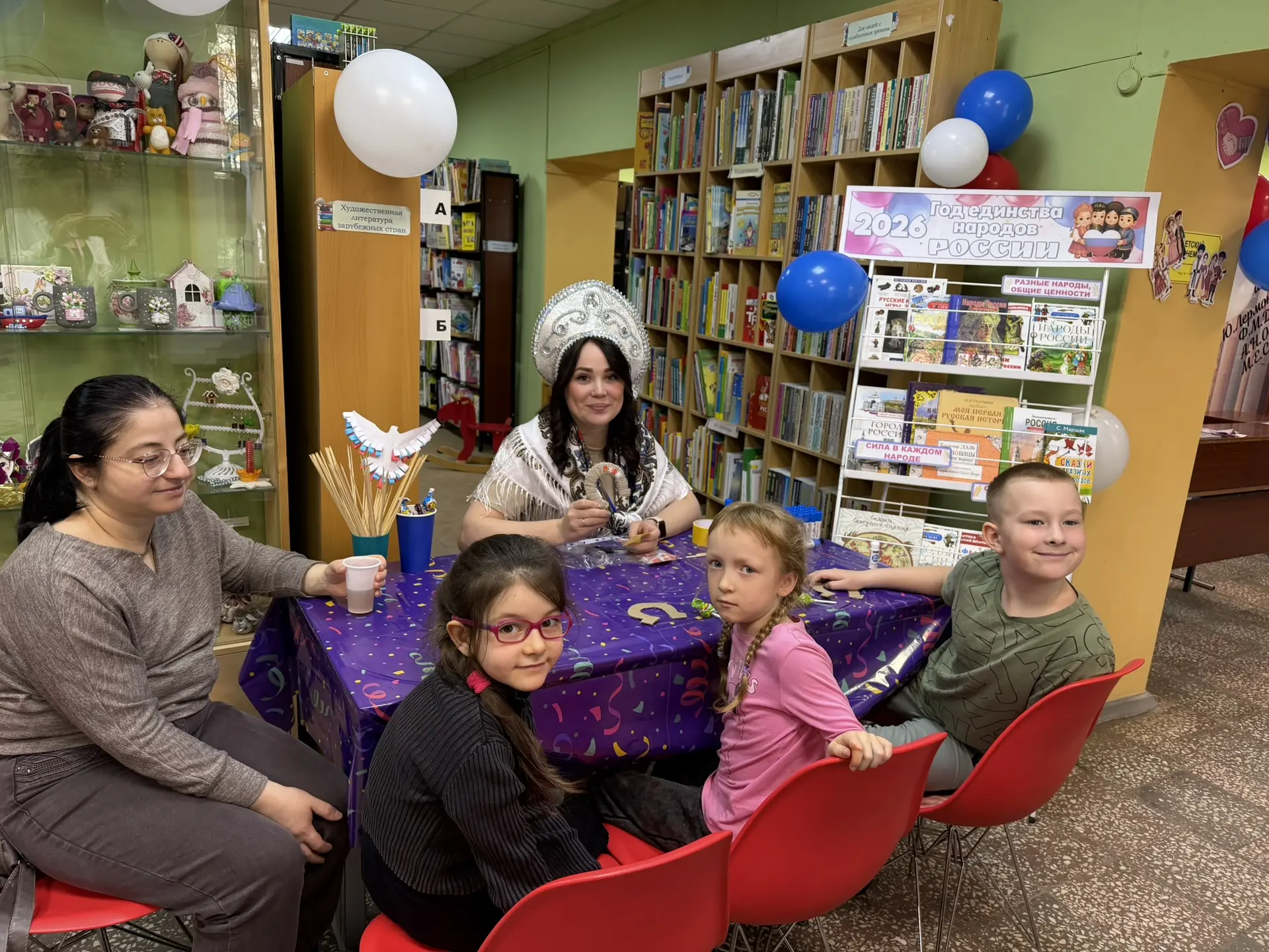 С 12:00 посетителей ждали увлекательные события: тематическая выставка «Единство народов России», творческие мастер‑классы «Крылья единства» и «Подвес счастья», библиокафе «Чай&Книга» с разными угащениями для гостей, познавательный квиз «Сказки на ночь: истории общего дома» и зажигательная музыкально‑анимационная гостиная «Гора самоцветов».