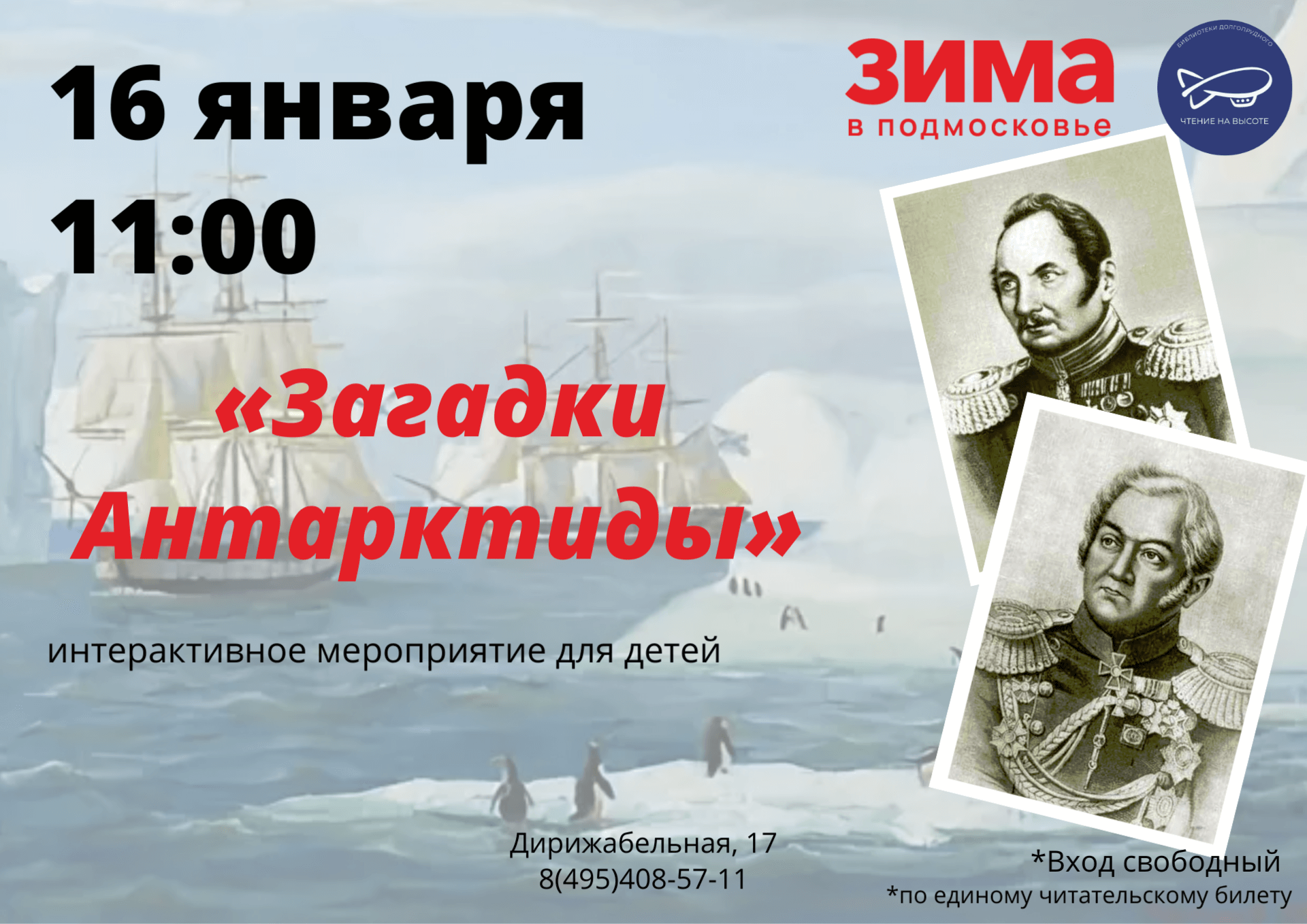 ❄ Друзья, 16 января в 11:00 приглашаем вас на интерактивно-развлекательную программу для детей «Загадки Антарктиды».