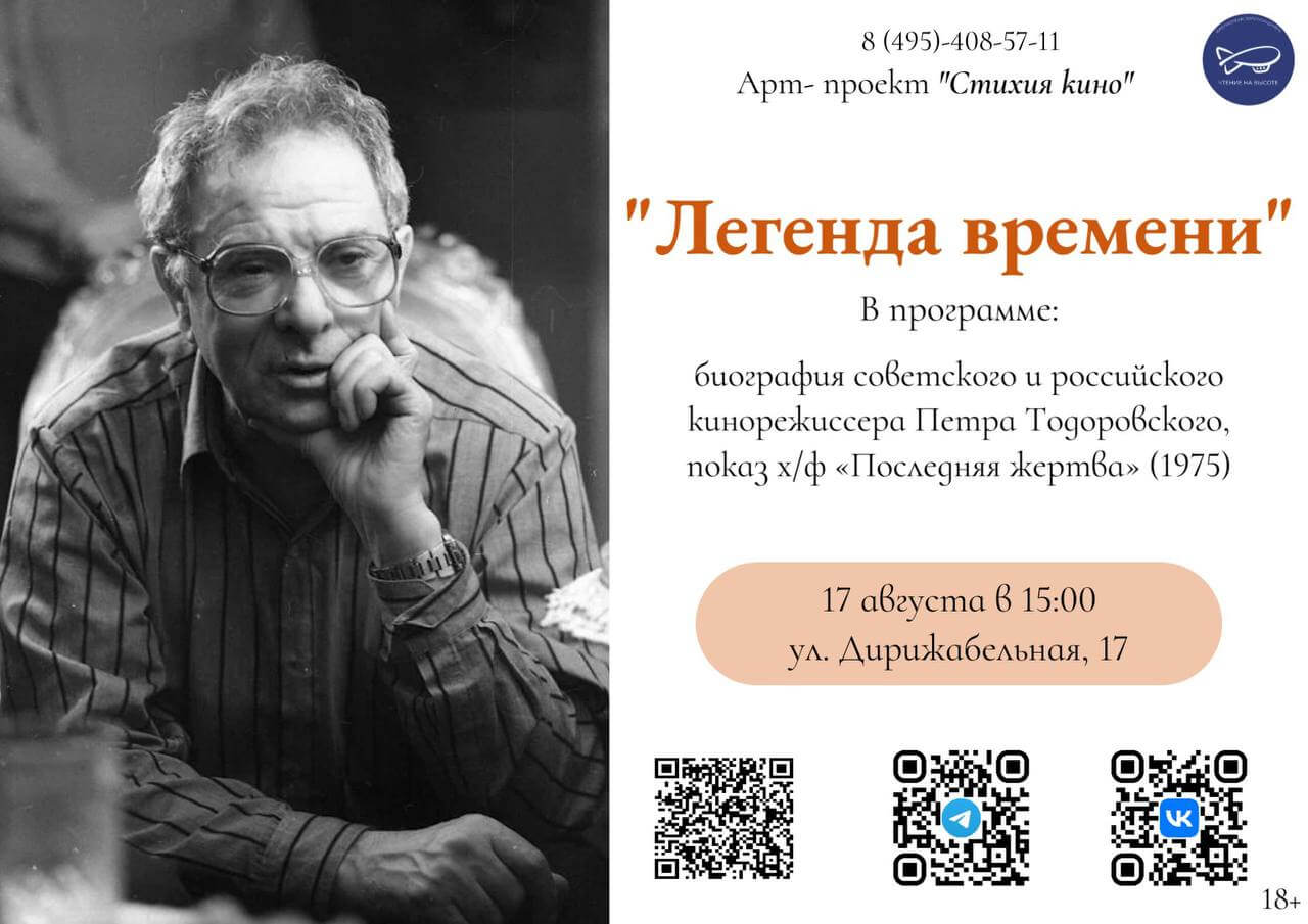 17 августа в 15:00 приглашаем вас в Центральную библиотеку г. Долгопрудный на встречу, посвящённую мастеру человеческих историй — Петру Тодоровскому. Это не просто кино, а погружение в мир, где судьбы переплетаются с историей, а эмоции остаются настоящими.