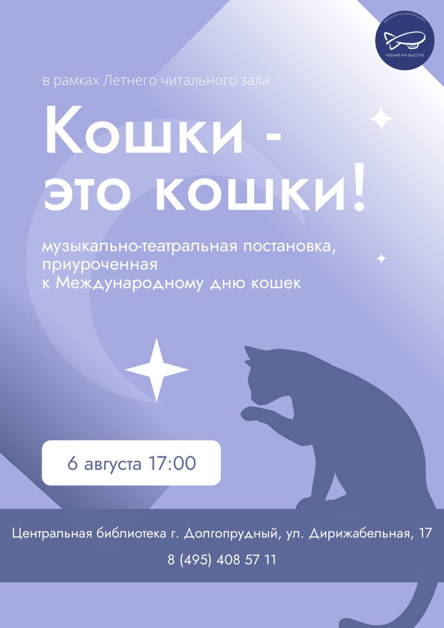 6 августа в 17:00, Центральная библиотека г. Долгопрудный, ул. Дирижабельная, 17. Ждём Вас!