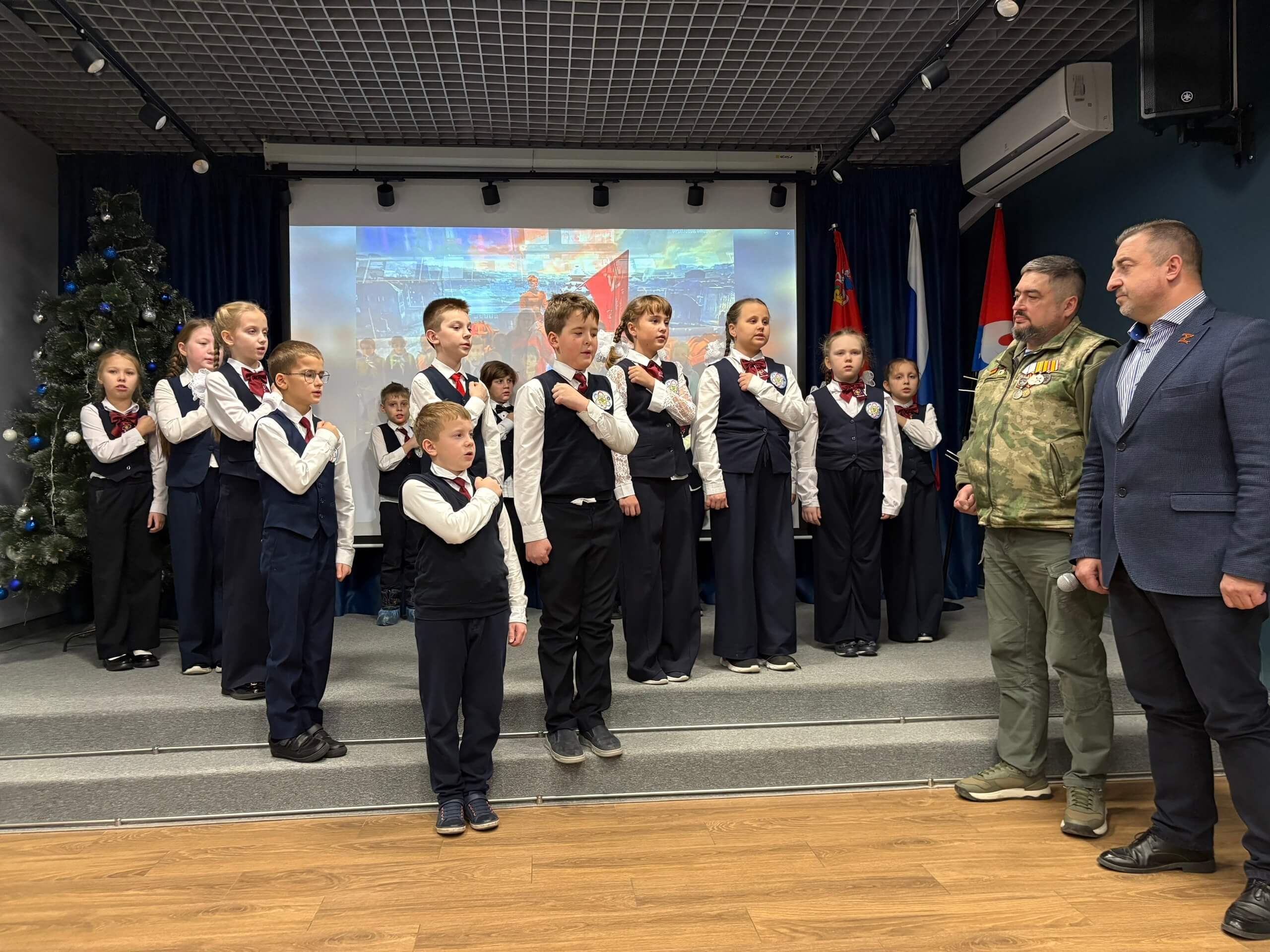 Третьеклассники трогательно исполнили для присутствующих патриотические песни. Ребята также подготовили тёплые «приветы из дома» для защитников с пожеланиями благополучного возвращения.
