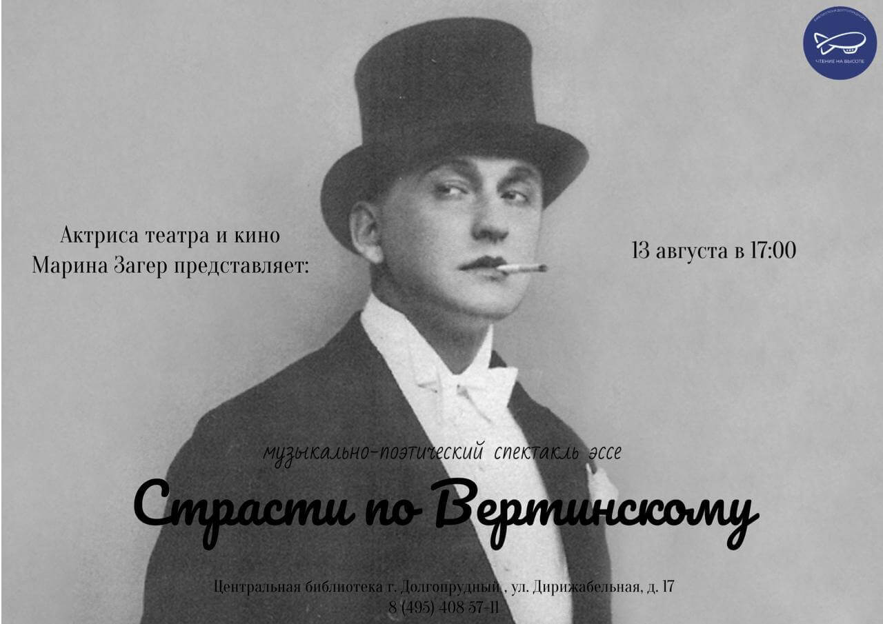 Главная | Афиша | Страсти по Вертинскому — музыкально-поэтический спектакль-эссе! Его называли поэтом с голосом бархатного дыма, а его песни звучали в самых изысканных залах мира.