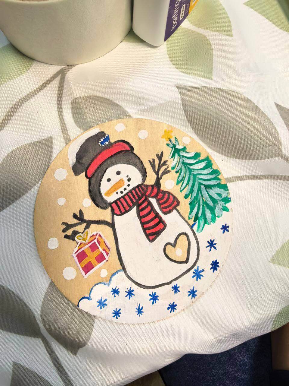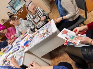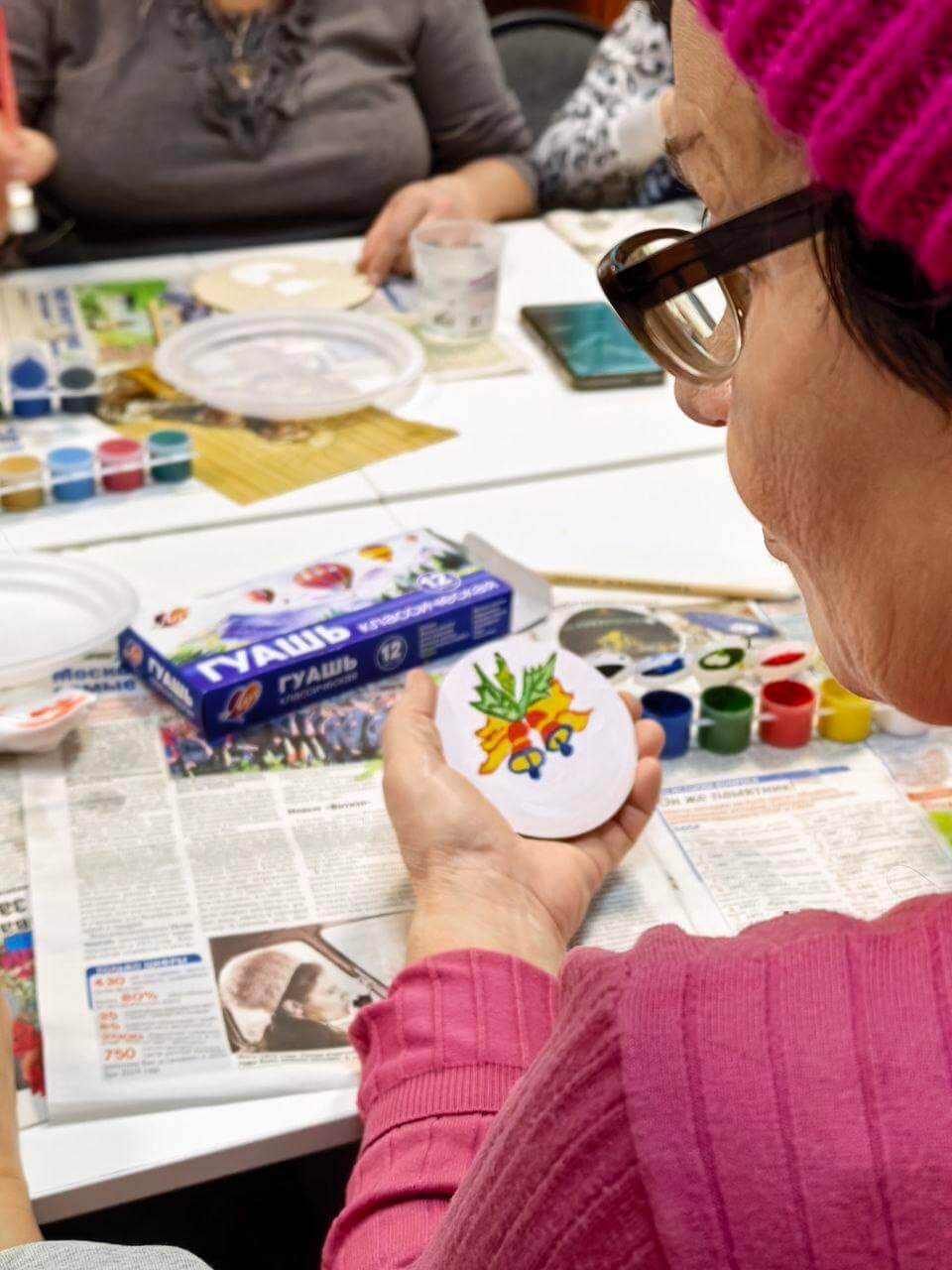 Участники с удовольствием занимались творчеством: создавали праздничные коллажи из газет и журналов, а также раскрашивали деревянные заготовки.