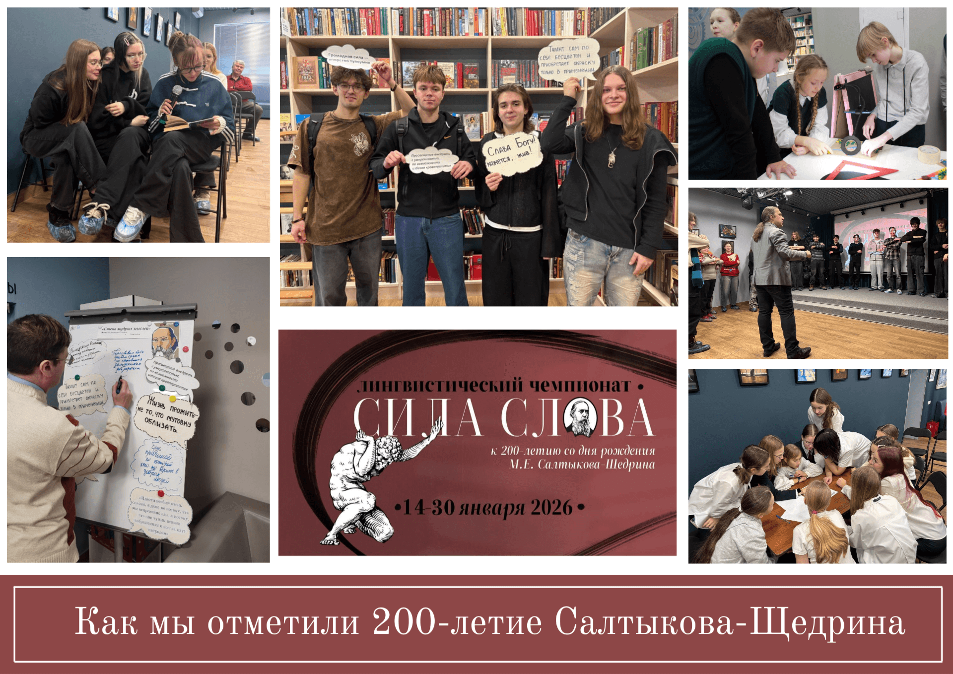 В рамках лингвистического чемпионата «Сила слова» наша библиотека провела серию мероприятий в честь 200-летия великого сатирика. Два века со дня рождения — весомая дата, и мы постарались по-новому открыть для вас мощь его слова, остроту мысли и непреходящую актуальность произведений.